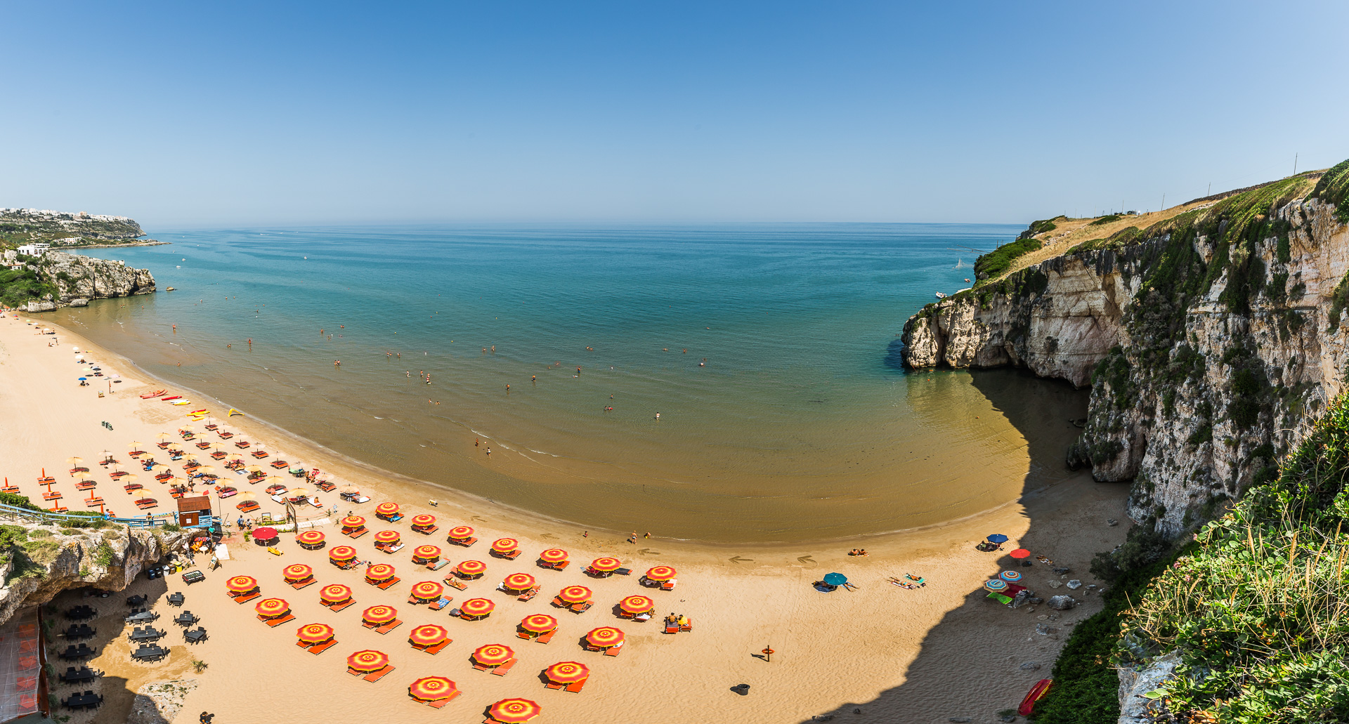 La prima mostra la splendida Baia Zaiana di Peschici, una delle spiagge più amate della Puglia: controlla il meteo live, osserva il mare cristallino e scopri l’atmosfera del Lido Zaiana, ideale per programmare la tua giornata al mare.